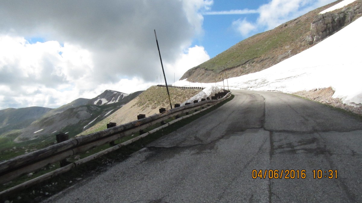 Heute geht es auf Abruzzen Rundtour. Ca. 200 km, hauptsächlich durch das Gran Sasso Gebiet. Das ist das Skigebiet der Römer, da es nur ca. 100 Km von Rom entfernt ist. Die Berge sind bis zu 2900 m hoch. Die Strecke ist mindestens genauso kurvig wie in den Dolomiten, nur die Landschaft ist anders.