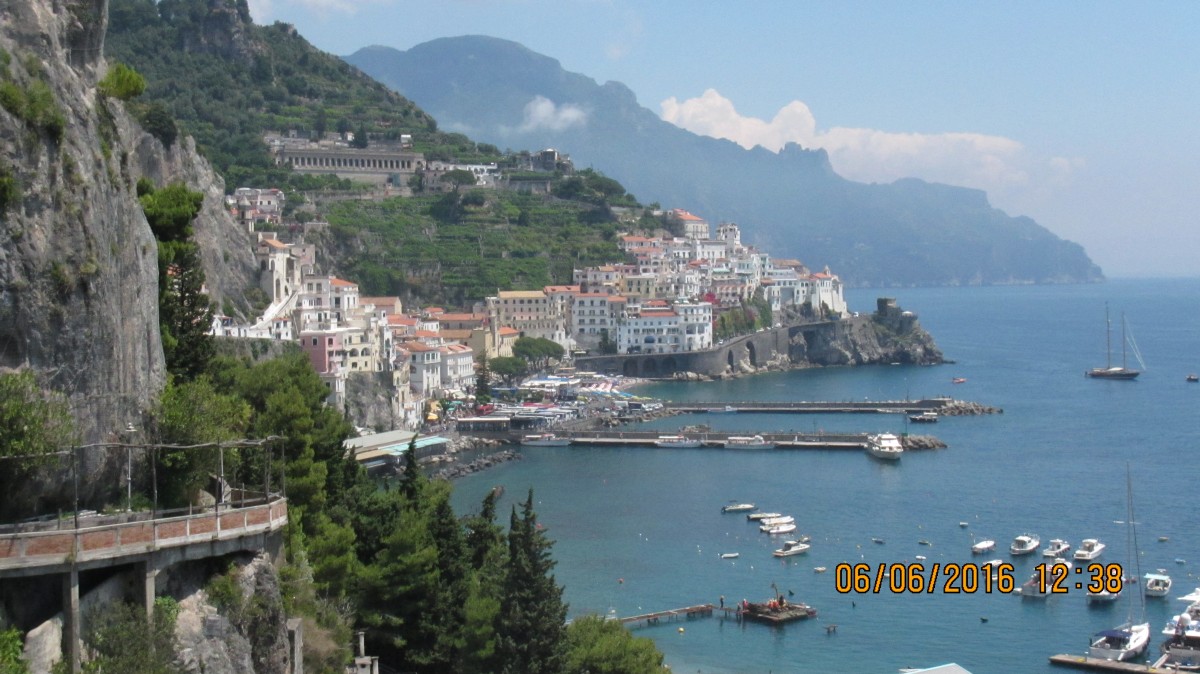 Um 8 Uhr stehe ich bei der Werkstatt auf der Matte. Um 12 Uhr soll der Roller fertig sein. Solange schaue ich mir Salerno an, was jetzt nicht ganz so prickelnd ist. Die Stadt bietet keine wirklichen Sehenswürdigkeiten. Um 12 Uhr hole ich den Roller ab, das Lenkkopflager ist erneuert, und die Tachowelle auch gleich noch mit. Und das für unglaubliche 120 Euro! Alleine das Lager erneuern kostet in Deutschland 250 Euro! Voller Euphorie mache ich mich gleich auf eine ausgiebige Rundtour um die Amalfi Küste, mit Blick auf den Vesuv und die Insel Capri.