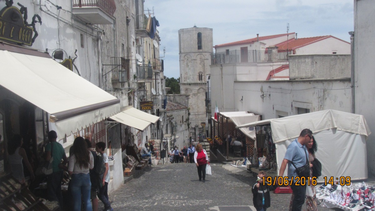 Mont Saint Angelo ist ein wohl recht bekannter und beliebter Wallfahrtsort in Italien. Dort befindet sich die Berühmte Grotten Kirche des Erzengels Michael, zu der viele Leute pilgern. Von außen sieht das zunächst aus wie eine normal Kirche. hinter dem Eingang geht’s dann aber erst mal gefühlte 20 Meter über Treppen nach unten in den Felsen hinein, in dem sich dann die eigentliche Grotten Kirche befindet. Sehr sehenswert.
