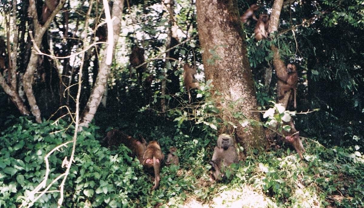 Mittags waren wir wieder an der Mandara Hütte, wo wir noch ein Mittagessen bekamen und die Sonne genießen konnten. Kurz vor der Mandara Hütte, im Wald, entdeckte ich mehrere Affen in einem Busch. Gegen 15 Uhr kamen wir wieder an unserm Ausgangspunkt, dem Marangu Gate an. Hier wurden wir abgeholt. Nachdem wir uns von unserem Führer, Koch und den Trägern verabschiedet hatten, wurden wir zu einem Hotel in Marangu gebracht. Wir übernachteten die letzten beiden Nächte in Marangu, da es höher als Moshi liegt und dadurch nicht so malariagefährlich ist. Den Nachmittag ruhten wir uns aus. Stefan versuchte von hier aus, für den nächsten Tag einen Ausflug in den Arusha Nationalpark zu organisieren, was nach anfänlichen Schwierigkeiten dann auch klappte. Um 19 Uhr gab es Abendessen im Hotel. Endlich mal wieder was anderes als die Verpflegung der letzten Tage.